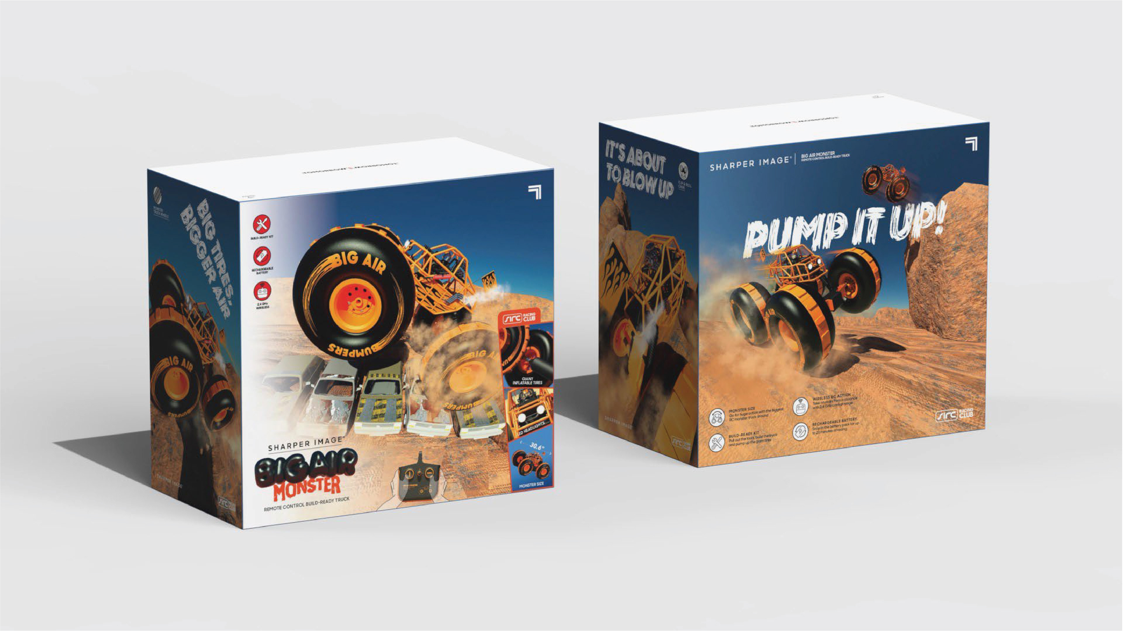 Revamped packaging design for Sharper Image, inspired by film and video games. The concept was to treat each individual product as its own movie, and create an identity to reflect that products character that lives in the same world that kids play in.
